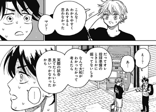 ヤングジャンプ感想:ダイヤモンドの功罪 第87話 つづき さてそれではダイヤモンドの功罪87話の感想つづきを書いていきます この前の感想では、ギスギスしていた綾瀬川も大和と会話しているうちに受け入れる気持ちになってきたというところまで語ったわけですが… 「綾瀬川くん、野球楽しないみたいなこと言うてたし、 辞めてしまうんかな思うてんけど…ちょうどリトルまでで」 「うん…」 そして改めて野球を辞めるのかどうかを確認する大和。 ギスギスしていた今回冒頭では「大和に関係ある?」とめっちゃ冷たい反応をしてましたが 受け入れる気持ちになった今では、「うん…」と素直に答えてますね。リトルまでで辞めるっていうのはやっぱりそうなのか… 「綾瀬川くんにしかわかれへん苦労みたいなのがあるんやろな… 前も言うてたやん、誰かが野球辞めるの自分のせいにされるて。 綾瀬川くん、あの時もしんどそうやったから… 野球、辞める決心ついたならよかったなあ」 と、そんな綾瀬川の決心をにこやかに受け止める大和! この重大な話を聞かされても、動じることなくこの反応ができるところに大和の度量の大きさを感じますね 普通だったら慌てふためいて「綾瀬川が野球を辞めるなんてとんでもない!」って必死に引き止めるんでしょうが、 大和は綾瀬川が穏やかに過ごせるならその方がいいっていう風に、綾瀬川の心身の健康を考えたら辞めてもいいんだと言ってくれるっていう。 なんだかこのやり取りを見ていたらホロライブの紫咲シオンが卒業した時のことを思い出したわ…(えー 知らない人に説明すると、紫咲シオンっていうのは今年4月にホロライブを卒業したメンバーなんですが もうすぐ卒業しますというお知らせがが最初に出た時にはそれはもう 慌てふためいて「シオンがホロライブを辞めるなんてとんでもない!」って必死に引き止める人たちが大勢現れたわけなんですよ しかしそんな中、シオンと同じホロライブ二期生の仲間である大空スバルがなんと言っていたかというと ここ最近のシオンは見てて心配になるくらいすごくしんどそうにしてる。 辞めることで穏やかに暮らせるならその方がいいってことを言っていたんですね もうまさに今回の大和と同じことを言ってるわけで 本当に相手の身を考えるなら、無理に引き止めて苦しい日々を過ごさせるよりも、 辞めることを受け入れて穏やかな日々を過ごせるよう願うべきなんじゃないかっていう。そのことを俺はこの出来事で実感しましたね… 「ずっとやってたことを辞めるん、勇気いるんやろな。 綾瀬川くんは野球辞めたら他のスポーツとかするん? バスケットズボンも似合うてるし、前は水泳やったっけ? 綾瀬川くんやったらどんなスポーツでもすごい選手になるんやろな」 「オレ、野球辞めないよ」 「えっ?あれ、そうなん?あらら…やったら僕めっちゃ失礼やな、ごめんなさい」 ちょ!?お前結局辞めないのかよ!? おいおいおい!これだけ辞める前提で話をしてきたっていうのによ!つーかお前さっき 「リトルまでで辞めるん思うてたけど」「うん」って言ってたじゃねーか! あの「うん」はなんだったんだよオイ!もしかして綾瀬川的にはあれなのか 「そう思ってた時期がオレにもありました」みたいな意味での「うん」なのか!? 前は思ってたけど今では違うと!?まったくなんていう紛らわしい奴なんだ 「てか辞めれないっしょ。オレが今辞めたらやばいよ、監督とか絶対死ぬほどなんか言われる」 「え、そんな理由?」 「…そんな?」 「やりたないんやったら辞めてええんちゃう? そら世界一のピッチャーが辞めた言うたらチームの評判は下がるんやろうけど、 別にええんちゃう?辞めたら関係ないねんし」 「世界一のピッチャーが野球辞めたらやばいよ…」 「そうかなぁ、綾瀬川くんがいてへんかったらいてへんかったで、繰り上がるだけや。 今やったら寝屋川の巴くんあたりが世代の1番になるだけや。それだけや」 って、自分が野球を辞めたら監督やみんなに迷惑がかかると気にする綾瀬川でしたが、 大和は「別にええんちゃう?」とまったく気にしておらず、世代の1番にしても代わりの誰かがそこに収まるだけだと… なるほどこの大和の考え方っていうのは、仕事を辞める時なんかにすごく必要な発想だと思いますね 自分が仕事を辞めようと思った時って、よくあるのが綾瀬川みたいに 「上司や会社のみんなに迷惑かかっちゃうから辞められない」って思考に陥ってしまうことだと思うんですが でもそんなこと言ってたらいつまでも辞められずにズルズルと会社に残ることになるし いっそ大和みたいにスパッと割り切った考えをするのが、辞める時には必要な発想だと思うんですよね まあ、残された側はぶっちゃけ大変にはなるわけなんですが(えー ただ、大変な中でもなんとか改善しようと色々と対策を考えたりするし 抜けた人の代わりに誰かに仕事を任せたりだとか、いなくなったら他の誰かがそこに収まるってい