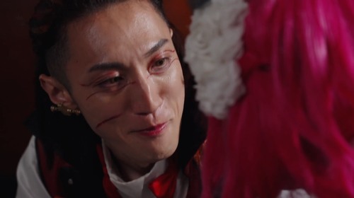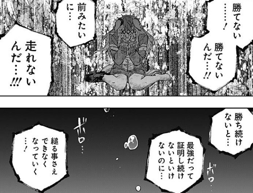 全身血みどろで死ぬ寸前になりながら危険な笑みを浮かべてるヤバイ奴ですよ!