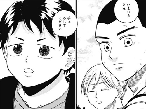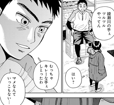 大和が今村さんに「手ぇ見してください」と頼みに行って、手にどんなタコやマメができているのかじっくり見たりだとか