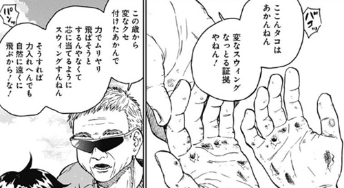 たとえばこのシーン、大和自身がコーチに手のタコを見てもらって